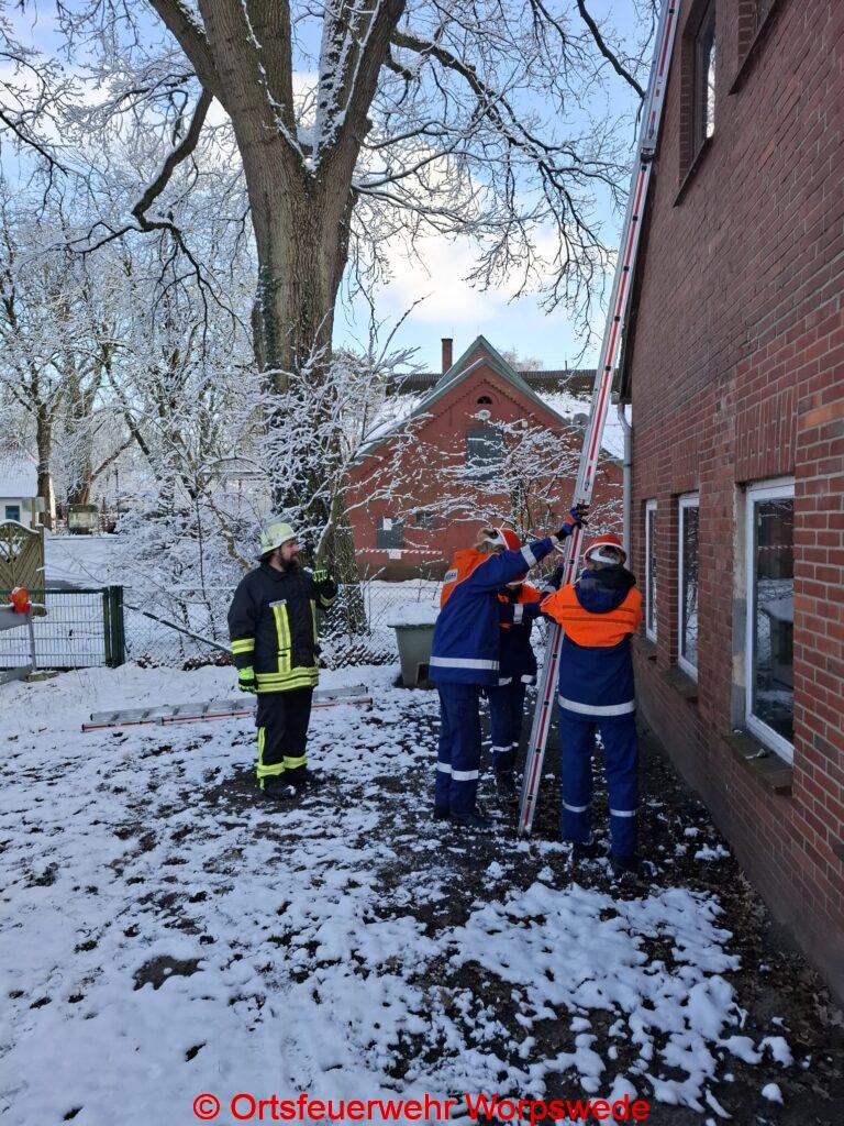 Beim Jugendfeuerwehrdienst am 14. Februar stand alles im Zeichen der tragbaren Leitern. Nach einem kurzen Theorieteil zu den verschiedenen Leiterarten, ihren Längen und möglichen Rettungshöhen ging es direkt in die Praxis.